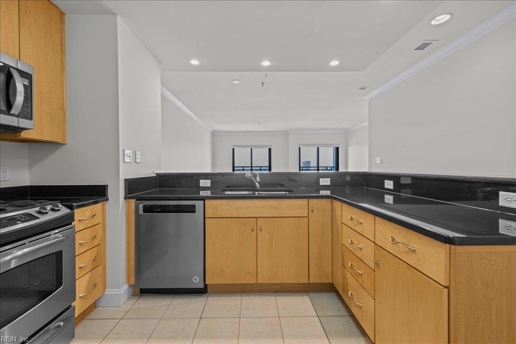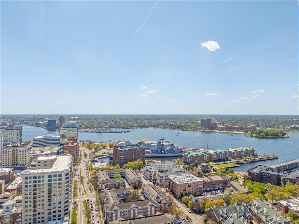 Perched on the top floor at 123 College Place, this penthouse offers sweeping views of the Elizabeth River and downtown Norfolk skyline from one of the most desirable vantage points in the city. Living here means being right in the center of everything downtown Norfolk has to offer--just moments from Waterside District, Harbor Park, the Battleship Wisconsin, the Elizabeth River Trail, and countless restaurants, shops, and entertainment venues. EVMS, Sentara Norfolk General, and CHKD are also just minutes away. Inside, the layout features a spacious open living and dining area that flows naturally toward the private balcony--perfect for enjoying the river views or hosting friends. The kitchen is equipped with granite countertops, stainless steel appliances, and a gas range, giving you both style and practicality for everyday living. This unit even includes two deeded parking spaces (#37 and #81) along with two storage units (#57 and #58). Some images have been digitally altered or staged.