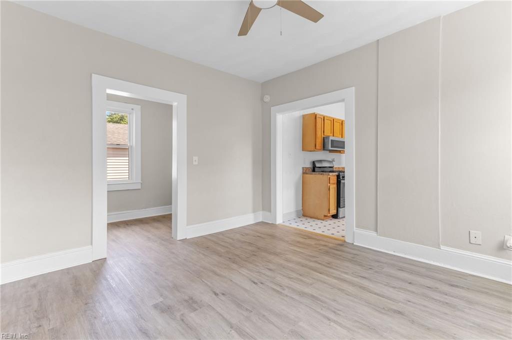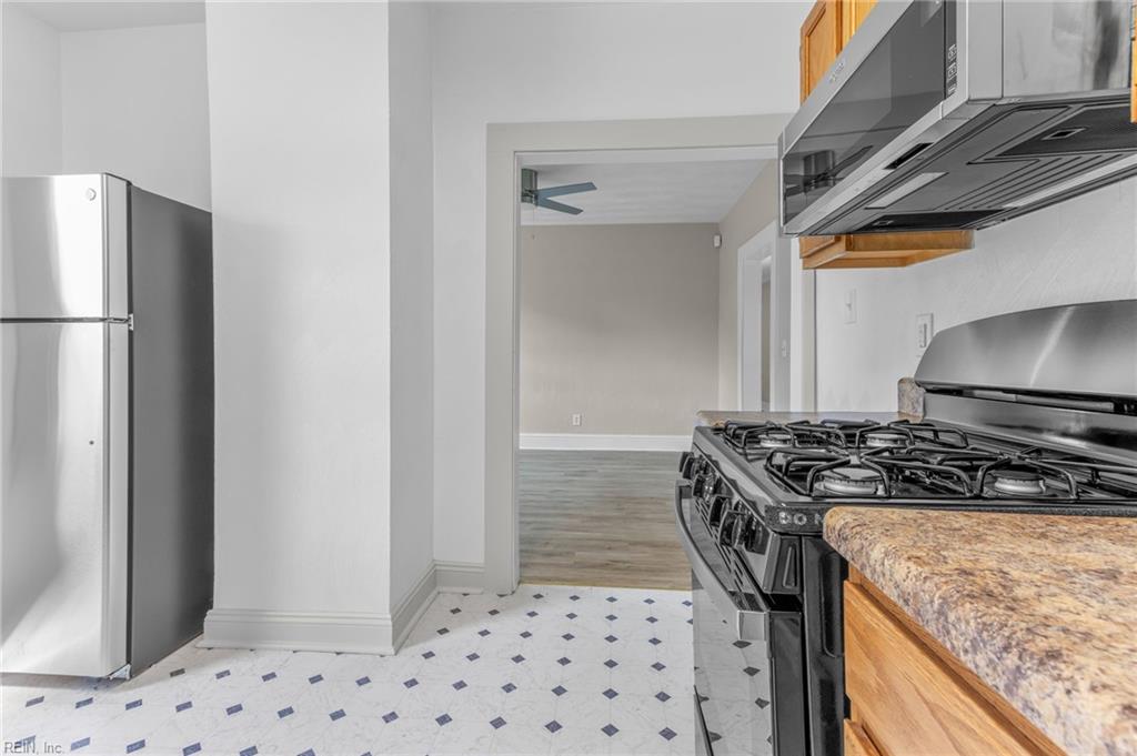 Beautifully renovated 2 bedroom, 1 bath ranch in downtown Portsmouth! Brand-new Stainless-Steel Gas Stove and Refrigerator in a spacious kitchen! Relax & entertain in the large living room with LVP flooring! Other upgrades include a new 30-year roof, gutters, certified foundation, newer remodeled bathroom, recessed lighting, ceiling fans, newer windows, crown molding & paint. Nice sized bedrooms with spacious closets. Enjoy the enclosed back porch and fenced backyard. Central location near the Norfolk Shipyard & Portside for Dining and Shopping! Owner/Agent